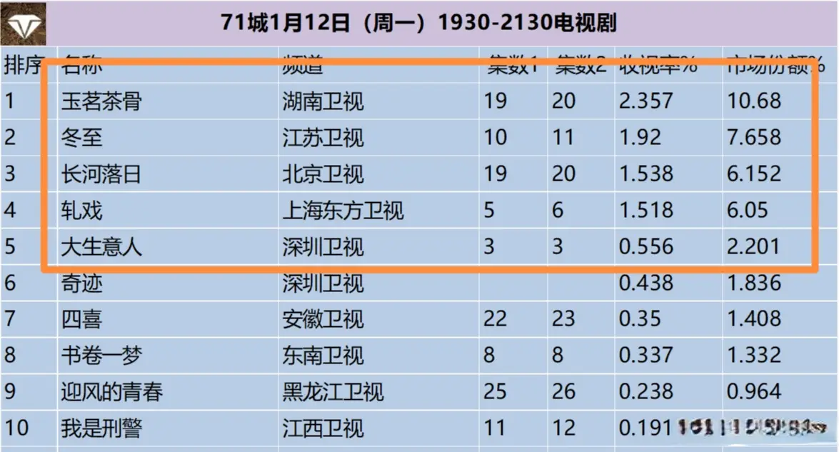 一分彩 电视剧收视率名次榜,《轧戏》排在倒数,第一收视高达2.357%