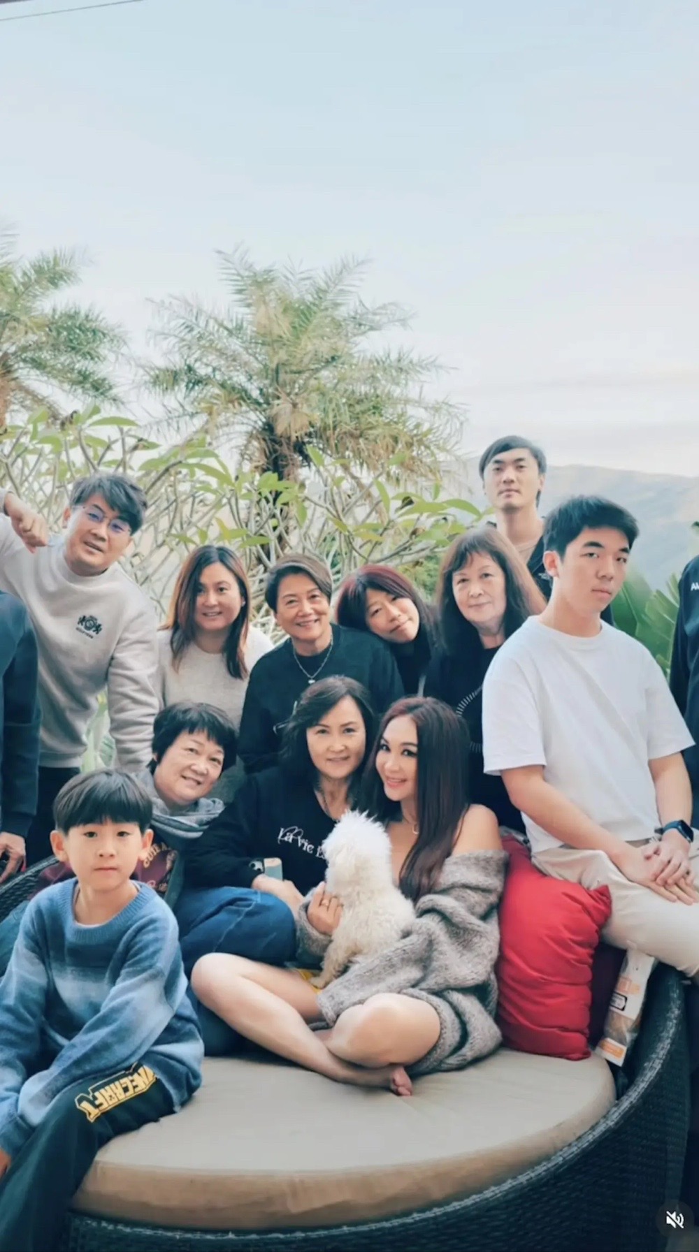 近期温碧霞带着老公、继子和3位姐姐们团员。
