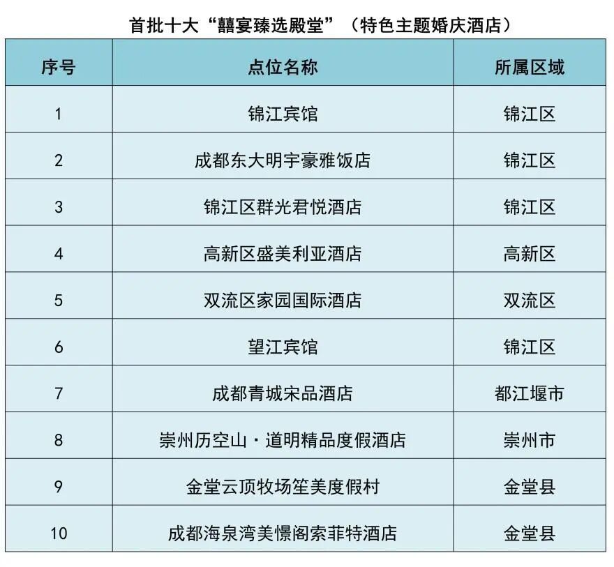 锦江宾馆、盛好意思利亚旅店、青城宋品旅店等十大旅店,适配不同作风婚典,见证亲一又祝愿下的幸福时刻。