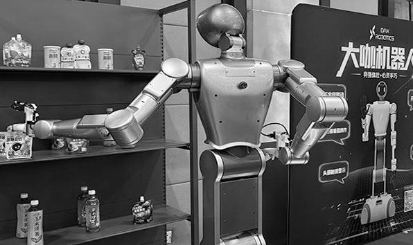 图为来雅瞻念咖机器东说念主的X7原型机正在分拣货架上的商品。陈跃佳 摄